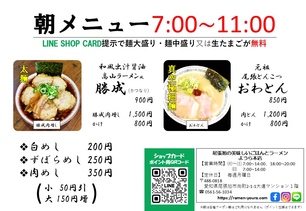7時~11時は朝限定のメニューです。(こちらクリック)